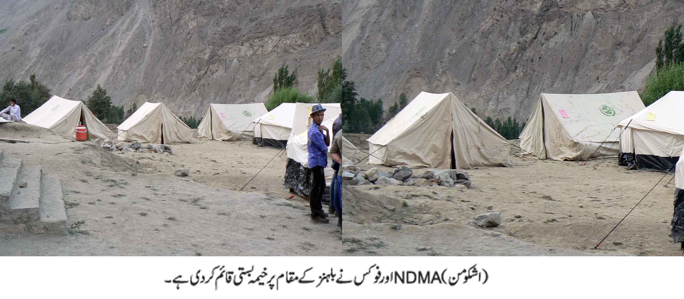 ڈپٹی کمشنر غذر شجاع عالم نے محکمہ صحت،تعمیرات،جی بی ڈی ایم اے ودیگر محکموں کے ذمہ داران کے ہمراہ متاثرہ علاقے کا پیدل دورہ کیا اور خیمے ادویات سمیت دیگر ضروری سامان متاثرہ علاقے تک پہنچا دئے گئے ہیں ۔محکمہ صحت نے آغا خان ہیلتھ سروس کے تعاون سے میڈیکل کیمپ قائم کردیا ہے جہاں مریضوں کا علاج جاری ہے ،جی بی ڈی ایم اے اور فوکس کے اہلکاران بھی موقع پر پہنچ گئے ہیں اور بحالی کے کاموں میں حصہ لے رہ ہیں۔بلہنز کے مقام پر خیمہ بستی قائم کیا گیا ہے جہاں متاثرین کو سہولیات فراہم کرنے کا سلسلہ جاری ہے۔