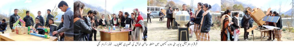 ہنزہ (اکرام نجمی) قراقرم انٹرنیشنل یونیورسٹی ہنزہ کیمپس ،مونٹین یوتھ آرگنائزیشن اور آغا خان یوتھ اینڈ سپورٹس بورڈ ہنزہ نے مشترکہ طور پر ایک سائنسی نمائش کا انعقاد کے آئی یو ہنزہ کیمپس میں کیا جس میں ہنزہ کے مختلف سرکاری و نجی تعلیمی اداروں کے طلباء و طالبات نے مختلف ماڈلز کے ذریعے اپنی تخلیقی صلاحیتوں کو اجاگر کیا۔