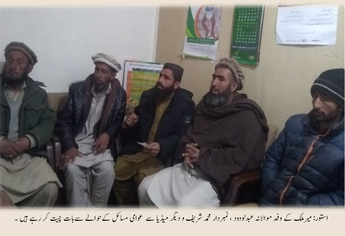 ان خیالات کا اظہار میر ملک کے وفد مولانا عبدالودود، نمبردار محمد شریف ،ریحان ملک ،محد شفی و عیسی نے میڈیا سے گفتگو کرتے ہو ئے کیا۔