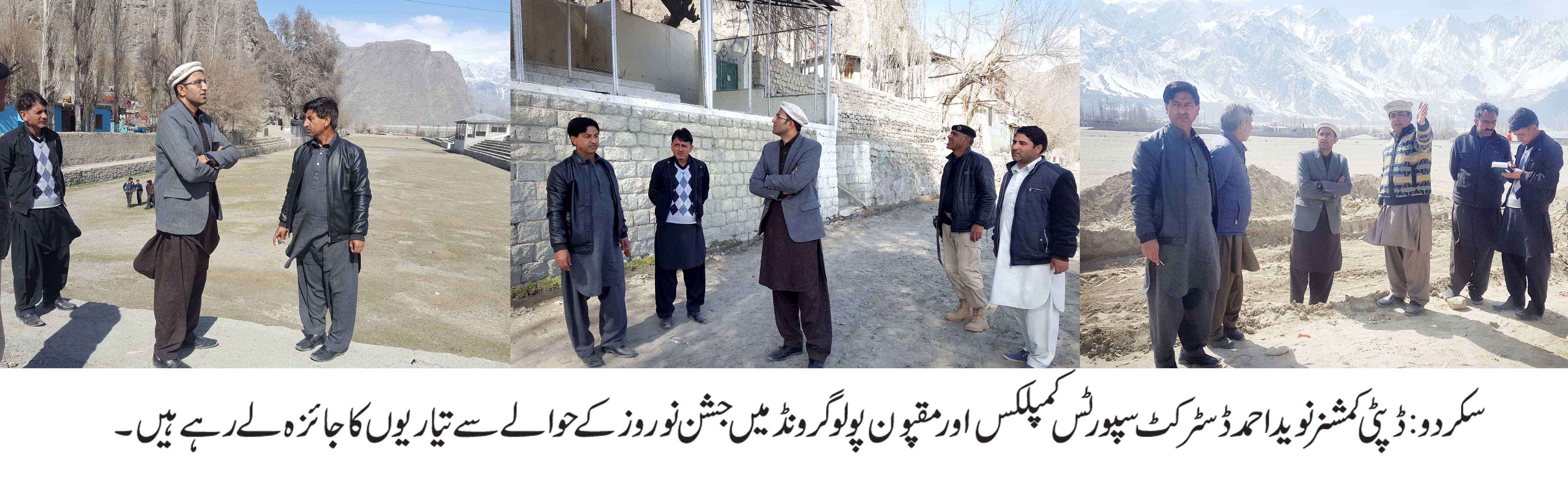 سکردو: ہفتہ کے روز ڈپٹی کمشنر سکردونوید احمد نے جشن نوروز و یوم پاکستان کے حوالے سے ہونے والے کھیلوں پولو، کرکٹ اور ہاکی کے میدانوں کا جائزہ لیا ۔ اس موقع پر سپورٹس آفیسر سکردو ، پولو، کرکٹ اور ہاکی ایسوسی ایشن کے صدور بھی ڈپٹی کمشنر سکردو کے ہمراہ تھے۔
