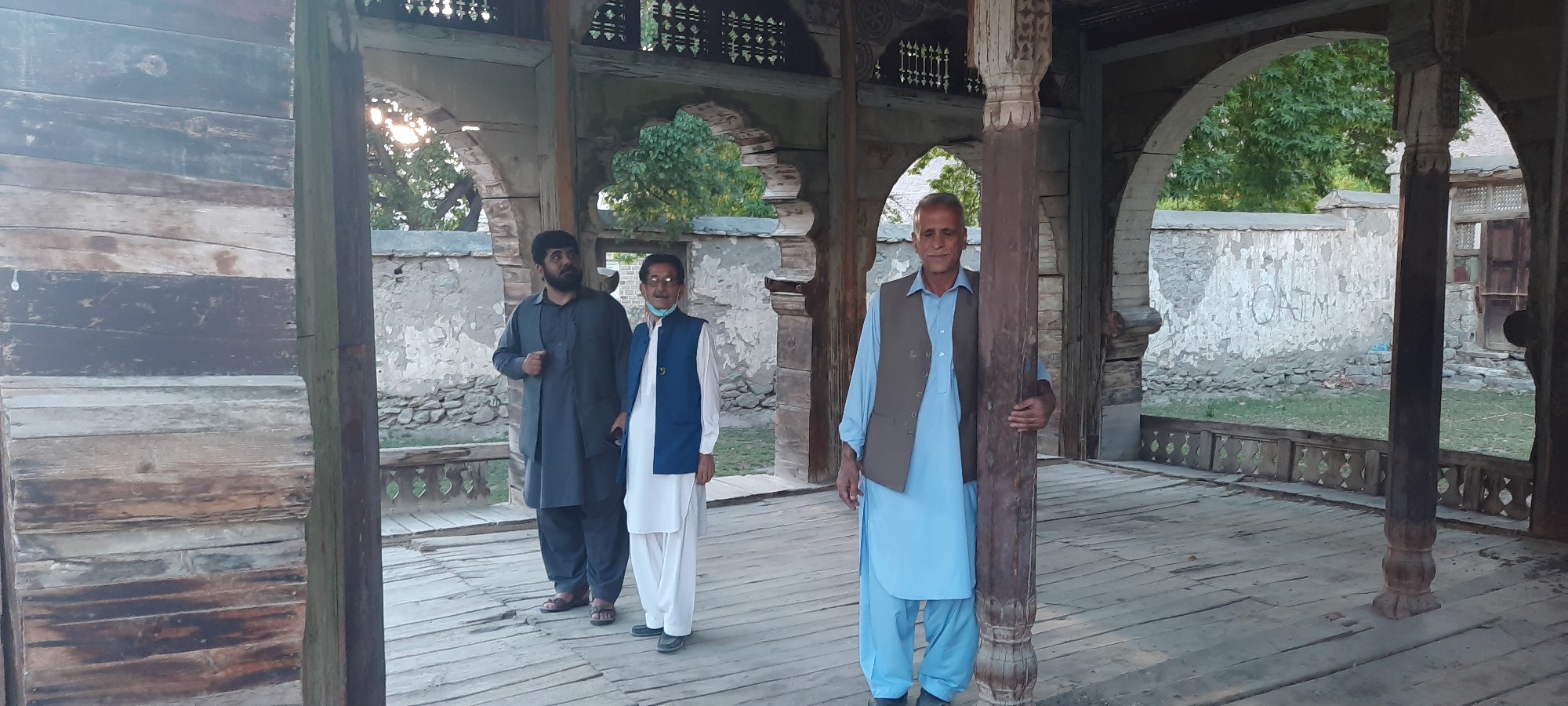 مرکزی دروازے کے بائیں جانب ایک شکستہ سی،زمانے کی کہنگی کے تھپیڑے سہتی ہوئی یہ چوبی عمارت ایک احاطے کے اندرموجود تھی۔۔۔اس کی دیواریں،ستون اور کھڑکیاں لکڑی کی تھیں۔۔۔جبکہ چھت پکی تھی۔۔۔اس پہ بہت نفیس کاشی کاری کا کام ہوا تھا۔۔۔جو اب اکثر اکھڑ چکا تھا۔۔۔