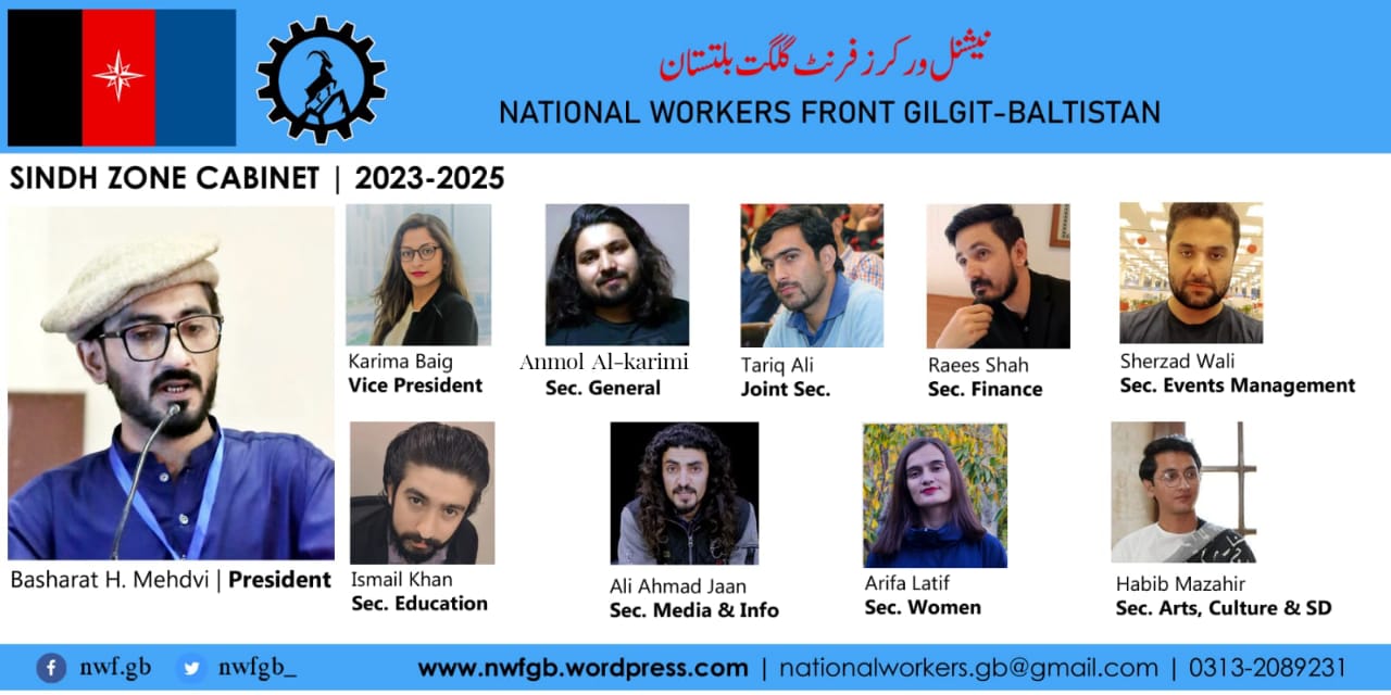 نیشنل ورکرز فرنٹ گلگت بلتستان سندھ زون کی پہلی کابینہ کا اعلان، بشارت مہدوی صدر منتخب