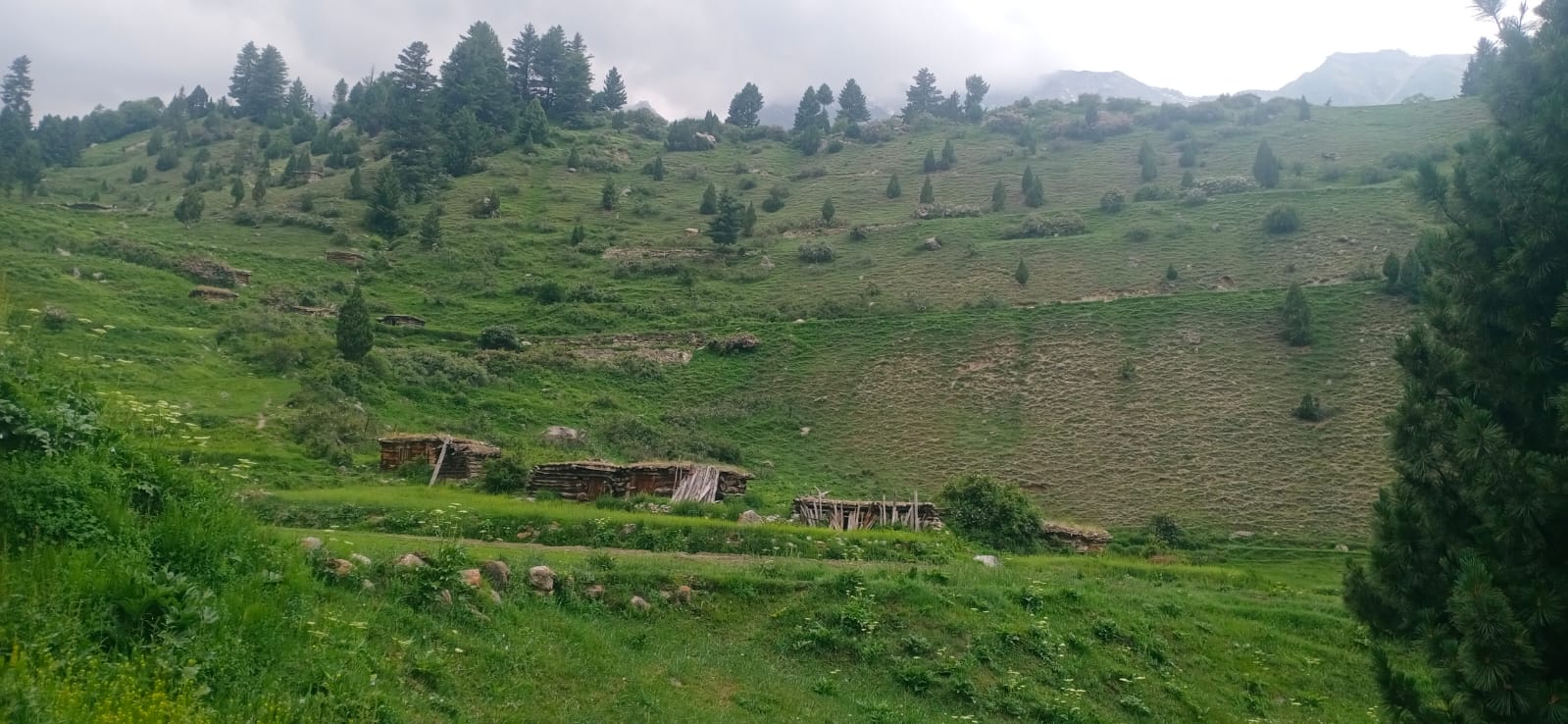 پھونگٹوری سے واپسی پر بارش ہونے لگی۔بارش کیا تھی کہ پودوں، پھولوں، کھیتوں کی ہریالی اور سبزہ، بارش کی وجہ سے شوخ ہوتا گیا بلکہ نازنینوں کی طرح شوخی پر اتر گیا۔ہوا میں بھرپور تازگی آگئی۔ہم کھیتوں اور ہریالی کے درمیان سے بھاگم بھاگ بارش سے بچنے کے لیے مجیب کے گھر پہنچے۔ مجیب کا ایک گھر پھونگٹوری میں ہے۔وہاں خالہ(مجیب کی والدہ) ہمیں خوش آمدید کہہ رہی تھی۔ وہ فنتوری میں کھیتوں کو پانی دینے آئی تھی۔ ہمارا دوپہر کا کھانا ان کے گھر فیری میڈو میں طے تھا، وہ کہہ رہی تھی جلدی جائیں اور کھانا وقت پر کھائیں۔ کھانا دیر سے کھانا درست نہیں۔دیہاتی لوگ کتنے مخلص ہوتے ہیں نا۔؟ یہ خالہ ماں کا روپ دھار رہی تھی۔ اگلے دن ہمیں فیری میڈوز کی سبزیوں اوردیسی اونی ٹوپی کے گفٹ اور ڈھیرساری دعاؤں کیساتھ رخصت کیا۔خالہ جی سدا سلامت رہیں۔