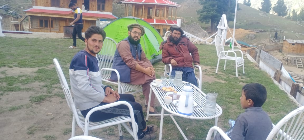 کامران کے چائے خانہ میں دو نوجوان انگریزوں سے ملاقات ہوئی، ایک میڈیکل سائنس کا طالب علم تھا جبکہ دوسراالیکٹرک انجینئرنگ کا، وہ فیری میڈوز اور نانگاپربت دیکھنے آئے تھے۔ہنزہ سے واپسی پر فیری میڈوز کا رخ کیا تھا۔ بہت دیر تک ان کیساتھ گپ شپ رہی۔دونوں کا تعلق انگلینڈ سے تھا۔ سیف الرحمان ہمیں مختلف جگہوں میں چائے اور جوس کا بندوبست کرتے رہے۔ اگر آپ لوکل ہیں تو یہ سب کچھ مفت میں کیا جاتا ہے یا ہمارے لیے مفت تھا۔