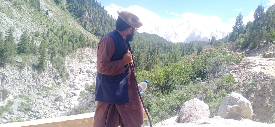 آئی بیکس لاج کے پروپرائٹر برکت اللہ نے اپنی کاٹیج سے ہمیں دیکھ لیا اور ہمارے طرف روانہ ہوئے۔ یوں فیری میڈو گراؤنڈ کے درمیان بہنے والا شفاف جاری پانی کے پاس ہمیں آ لیا۔ ہم دونوں نے چوبیس سال پہلے گوہرآباد ہائی اسکو ل میں چھٹی ، ساتویں اور آٹھویں ساتھ پڑھا تھا۔ پھر میں دینی اور عصری تعلیم کے لیے کراچی سدھار گیا اور برکت اللہ جی بی سکاوٹ میں بھرتی ہوئے۔ انہوں نے جاب مکمل کرکے ریٹائرمنٹ لی اور آئی بیک لاج بنایا جبکہ ہم سرکاری ملازمت میں ہیں۔ لبنی کو سیف الرحمان کی والدہ اور بہنوں سے ملاقات کے لیے ان کے گھر جانا پڑا، جبکہ میں اور برکت اللہ آئی بیکس لاج میں چائے کی چسکیاں لیتے ہوئے دائیں بائیں کے مناظر سے لطف اندوز ہونے لگے۔ آئی بیکس لاج سے فیری میڈو اور نانگا پربت کا نظارہ خوب ہورہا تھا، عصر کے بعد کا وقت تھا مگر نانگا پربت نے بادلوں کی چادر اوڑھی تھی اس لیے ہم پہلے دن غروب آفتاب کے نظارہ سے محروم رہے۔ارادہ یہی تھا کہ رات کو واپسی براڈ ویو کی طرف جائیں گے لیکن برکت اللہ کے دو ٹوک فیصلے نے ہمیں یہی آئی بیکس لاج میں رکنے پر مجبور کردیا۔ انہوں نے اپنے بیٹے سے کہا، انکل کو کمرے کی چابی دیں، اور جب تک یہاں رہیں گے ان کے کھانے پینے اور آرام کا بندوبست کریں اور فوری طور پر اپنے بیٹےصفت اللہ کو پیسے دیے کہ وہاں سے بکرا لے آئیں ۔ ”میرے بھائی آئے ہیں تو بکرا کٹے گا ”۔ ہزار منع کرنے کے باوجود برکت اللہ نے اک نہیں سنی ، بلکہ شٹ آپ کال دی۔یوں واپسی تک ہم جرگہ دار برکت اللہ، آئی بیک لا ج اوراس کے تمام احباب کی مہمان نوازیوں کو انجوائے کرتے رہے۔جزاکم اللہ۔
