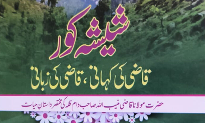 اس لحاظ سے آپ کی اس سوانح کو بیان کرنے کے لئے میرے خیال میں ’’شیشہ کور‘‘ سے اچھا کوئی لفظ نہیں۔ ’’شیشہ کور‘‘ پھولاوئی کی پشت پر کھڑے اس پہاڑ کا نام ہے جس پر دھوپ میں نگاہ نہیں ٹکتی اور اس کی چمک کی وجہ سےآنکھیں چندھیا جاتی ہیں۔ حضرت قاضی صاحب کی شخصیت بھی اپنے ظاہری اور معنوی حسن میں اس پہاڑ سے کم نہیں۔