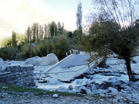 غذر(شاہدعلی) گلگت چترال روڑ پر واقع ہایئم اور گوپس پل ۲۰۱۰ میں سیلاب کی نذر ہوئے تھے ان پلوں کے تباہ…