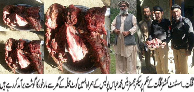 گلگت : بسین میں گھر پر چھاپہ مارخور کا10کلو گوشت برآمد، ملزمان فرار
