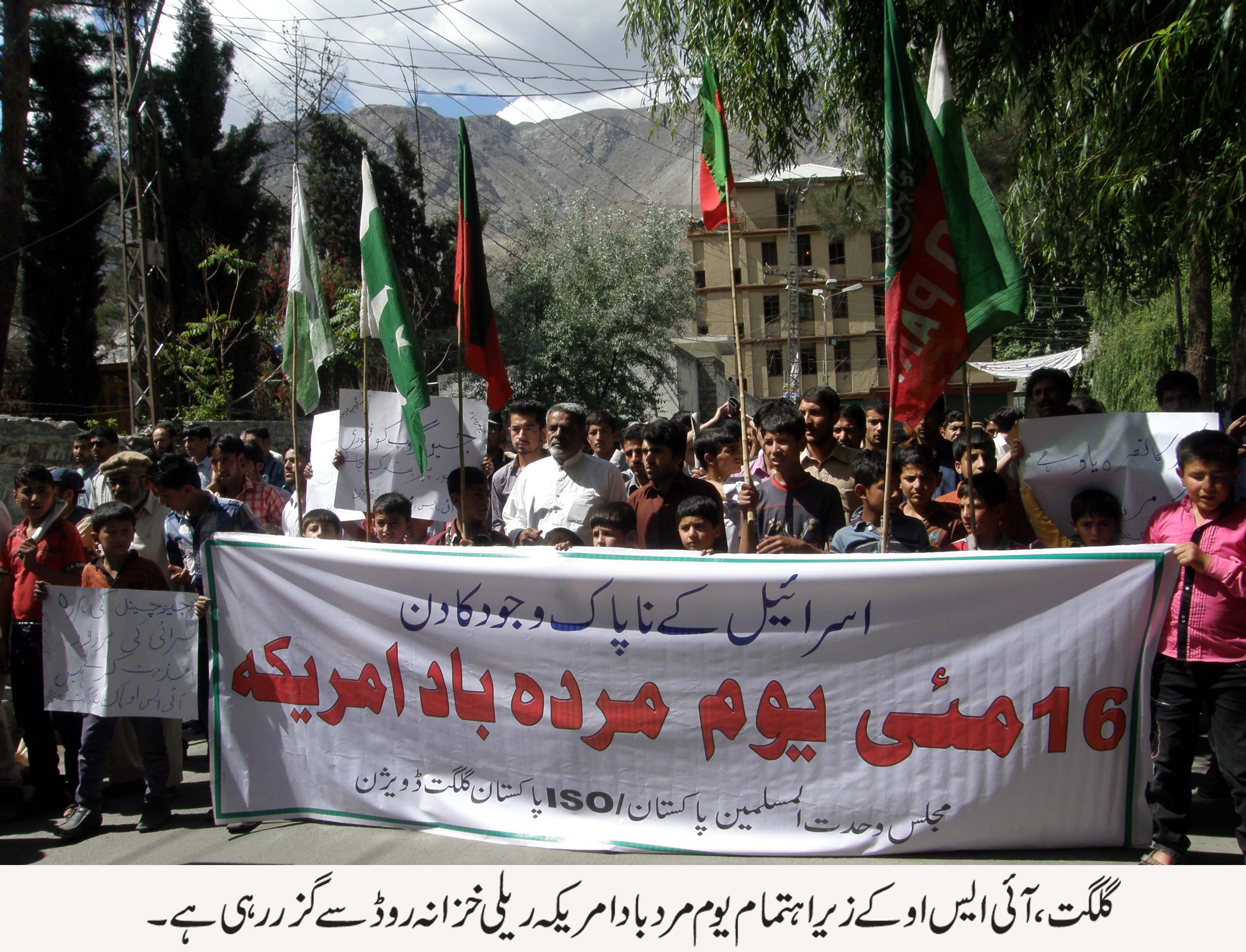 مجلس وحدت المسلمین اورآئی ایس او کے زیر اہتمام گلگت میں "امریکہ مردہ باد” ریلی